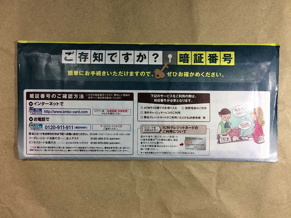 1. 「三井住友ビジネスカード for Owners」が送られて来た封筒の表面です。デザインは他のカードと同じですね。