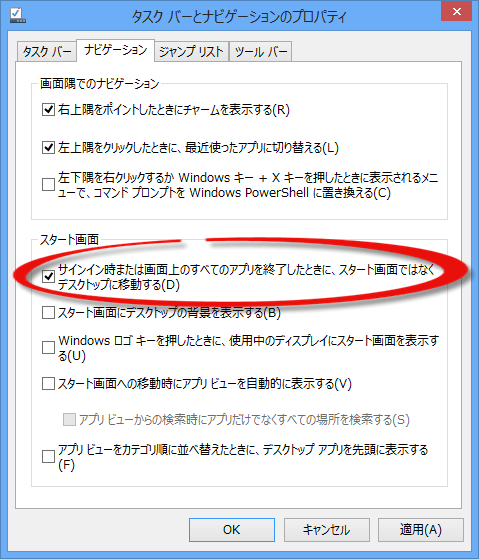 2013.10.18 2013-10-18 11-08-12 Tweet Share Hatena Pocket RSS feedly Pin it この記事のタイトルとURLをコピーする タスクバーとナビゲーションのプロパティーのイメージです Tweet Share Hatena Pocket RSS feedly Pin it この記事のタイトルとURLをコピーする