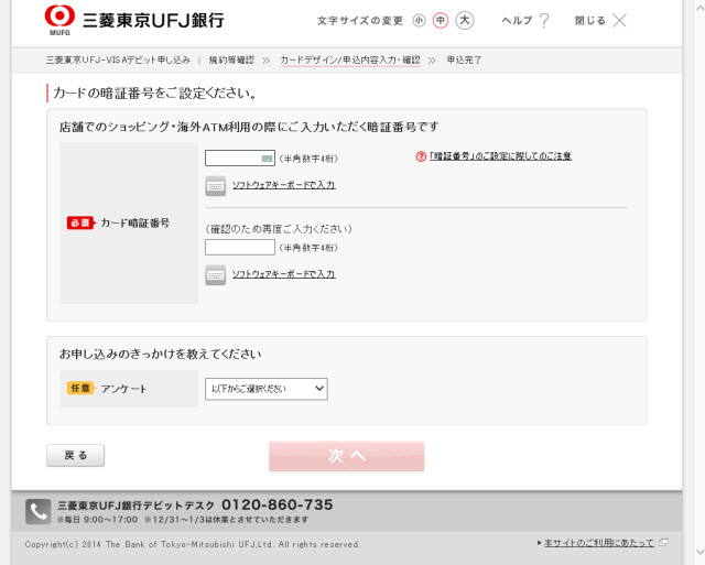 2014.02.23 2014-02-21_09 Tweet Share Hatena Pocket RSS feedly Pin it この記事のタイトルとURLをコピーする カードの暗証番号をご設定ください。のイメージです Tweet Share Hatena Pocket RSS feedly Pin it この記事のタイトルとURLをコピーする